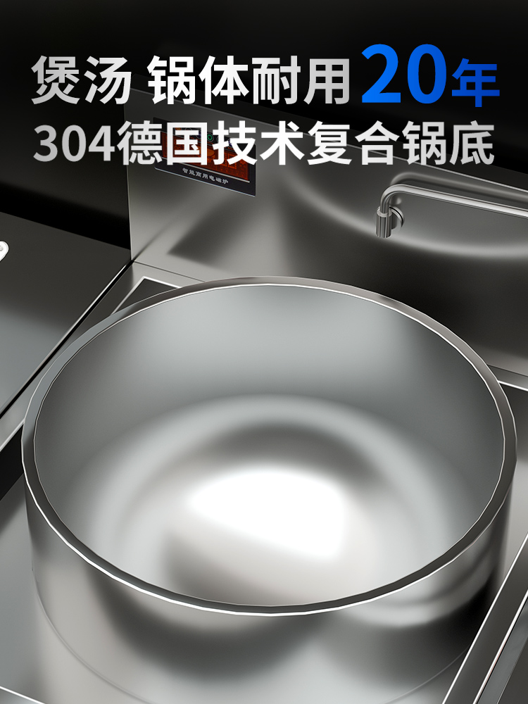 4. Mudah dibersihkan: Bahagian atas dapur dapur sup aruhan biasanya diperbuat daripada bahan yang mudah dibersihkan seperti keluli tahan karat, dan ia tidak mudah melekat pada periuk, jadi ia sangat mudah dibersihkan.